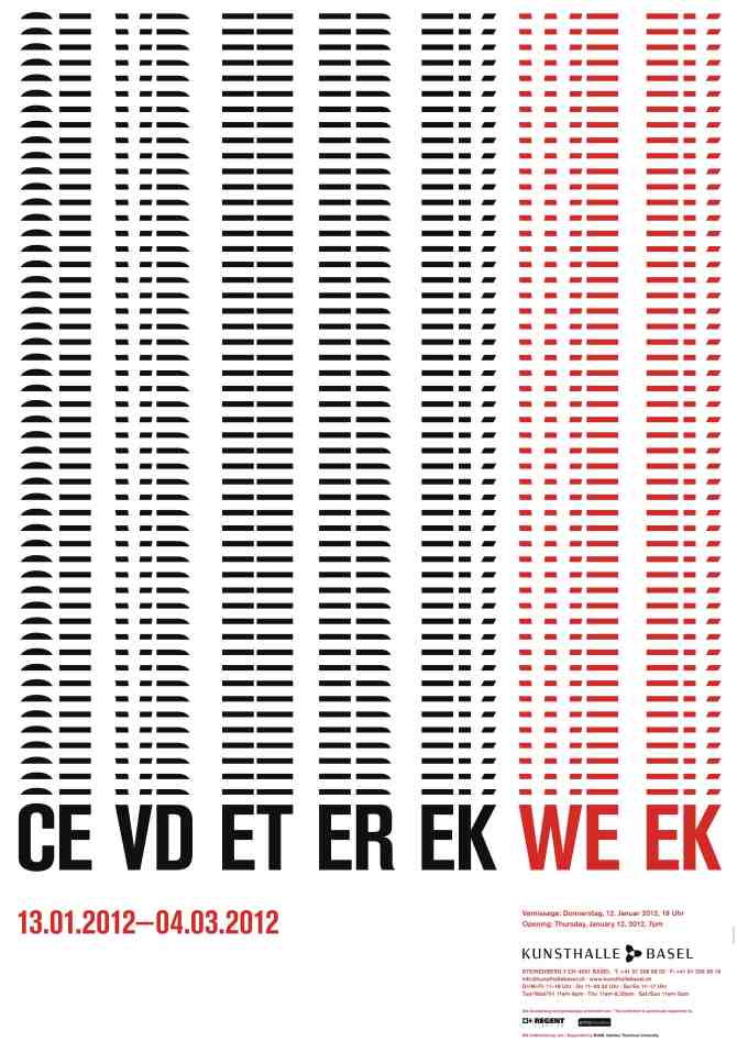 Press Meeting: Thursday, January, 11am////Opening: Thursday, January, 7pm////Museums Night Special: Friday, January 13, 9pm-1am: "Several Types of Museum Audience Gathered Together in an Installation and Grooving with a Week" Live Mix by CE////WEEK poster and invite by Yetkin Başarır